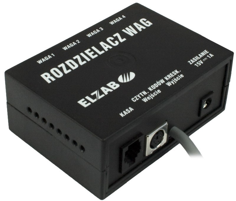Za pomocą rozdzielacza można podłączyć do kasy do 4 wag. Stosując kilka rozdzielaczy połączonych szeregowo można do kasy podłączyć większą liczbę wag. Sposób odczytywania wagi przez kasę zależy od wersji programu wagi ELZAB Prima i może odbywać się poprzez naciskanie klawisza na wadze lub na kasie.