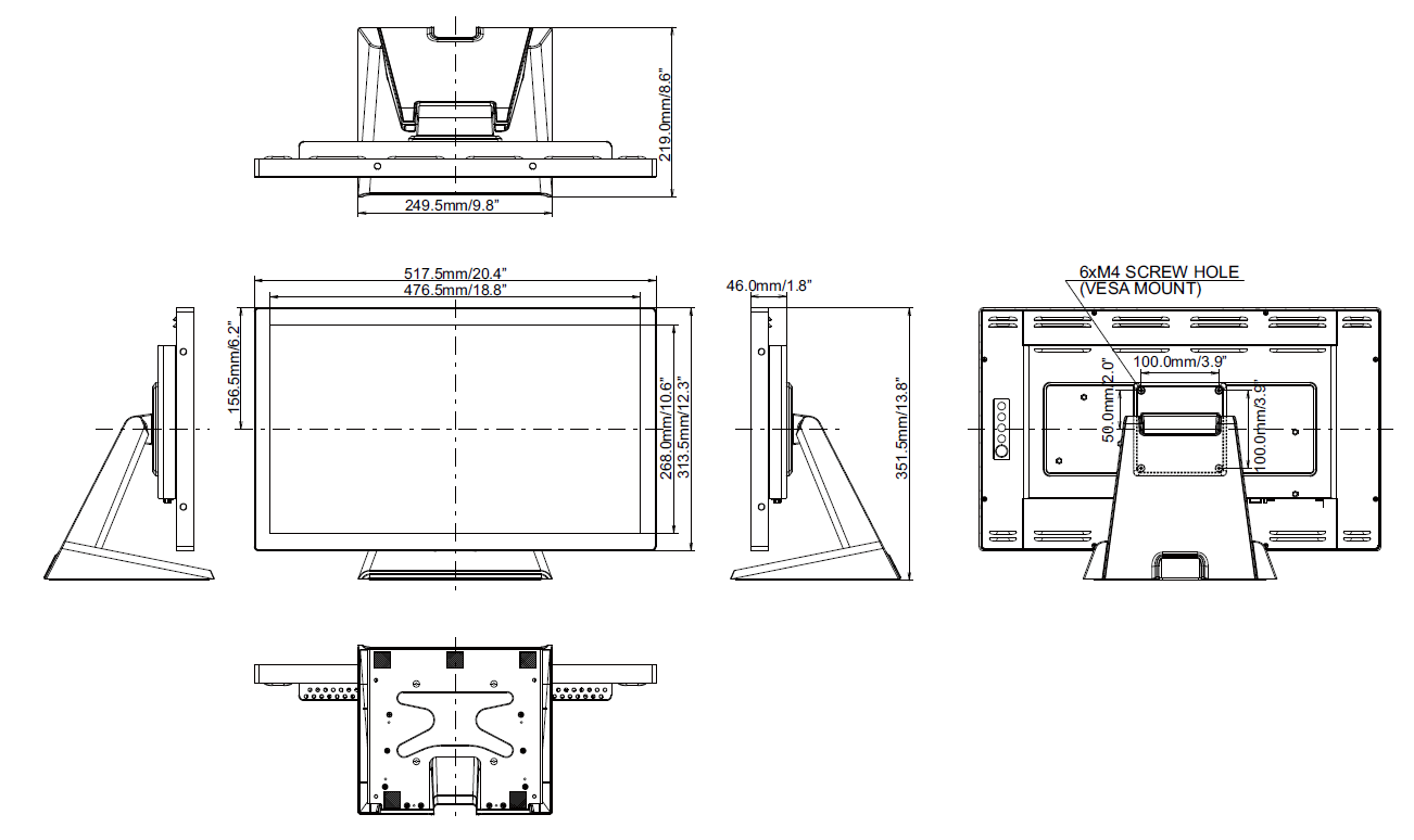 22-calowy monitor w technologii pojemnościowej z 10 punktami dotykowymi i panelem IPS