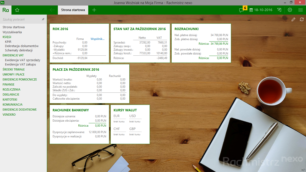 - ewidencja i rozliczanie rozrachunków, naliczanie różnic kursowych, integracja z zapisami księgowymi KPiR oraz z zapisami VAT;