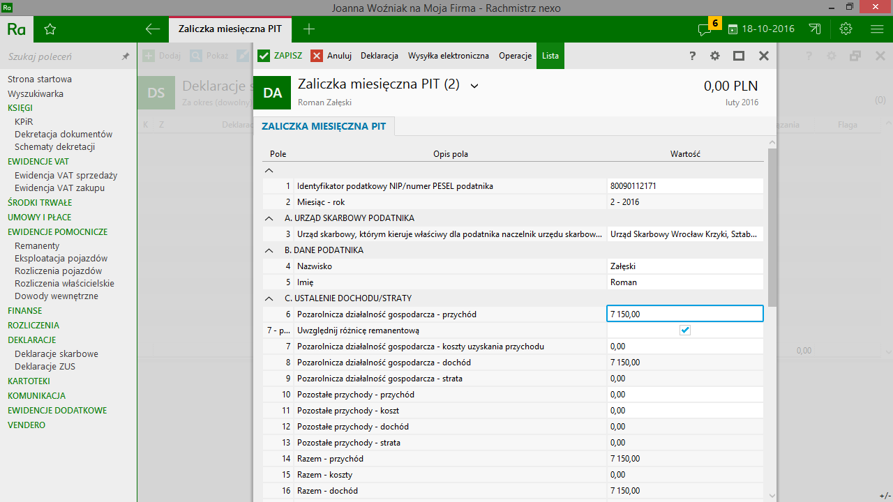 - wystawianie i wydruk deklaracji skarbowych rozliczających podatek dochodowy wspólników i pracowników;