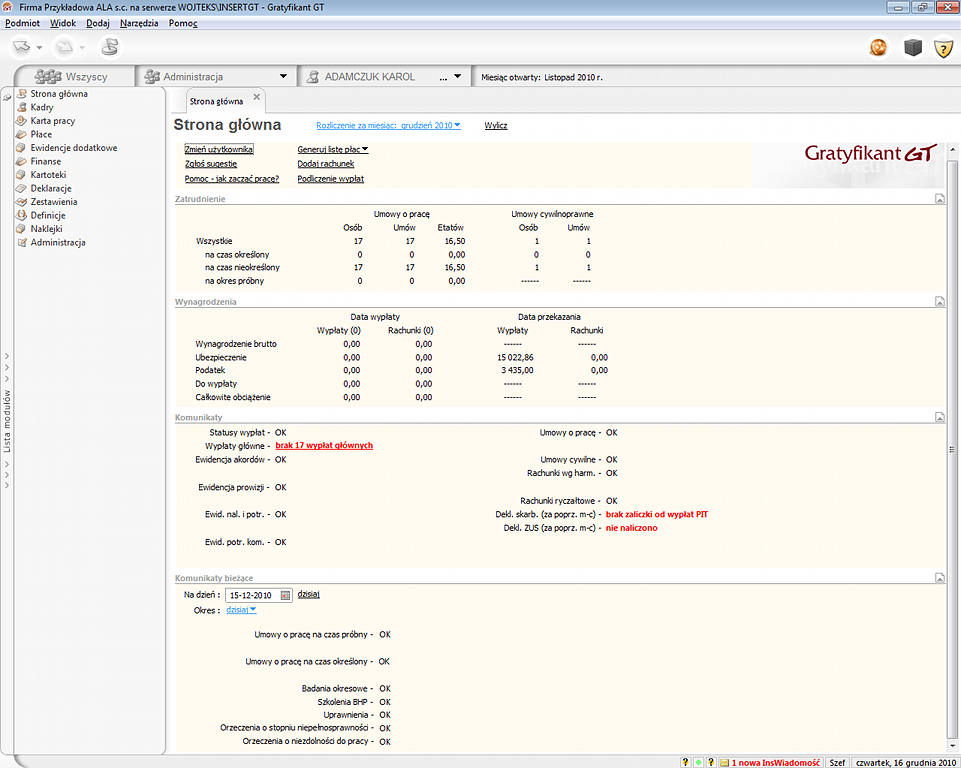 Gratyfikant GT jest nowoczesnym systemem kadrowo-płacowym, następcą programu Gratyfikant 3. Program polecamy osobom, które w małych i średnich firmach zajmują się sprawami kadrowo-płacowymi, a także biurom rachunkowym.