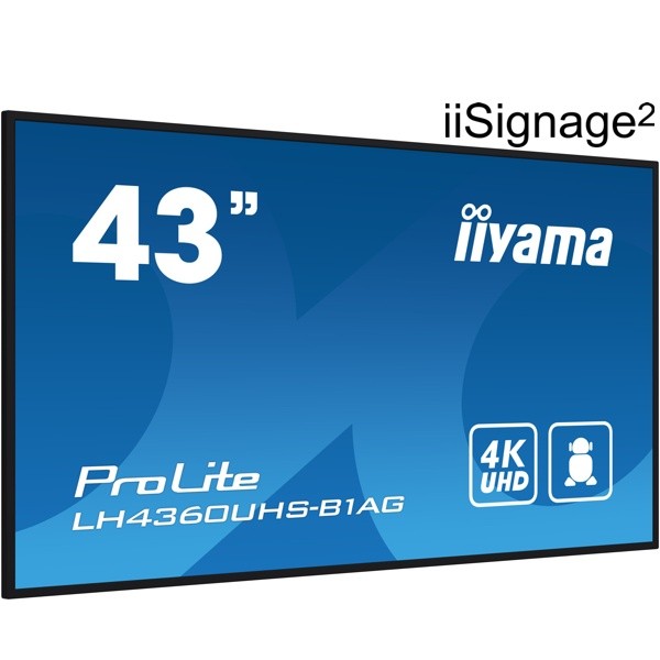 Podnieś poziom komunikacji wizualnej dzięki LH4360UHS-B1AG i uwolnij nowe możliwości dla swojej firmy. Ten wyświetlacz o wysokiej jasności 500 cd/m² jest potężnym narzędziem biznesowym, które przenosi działania marketingowe i komunikacyjne na wyższy poziom. Dzięki systemowi operacyjnemu Android 11, oprogramowaniu do zarządzania treścią iiSignage², funkcjom Signal FailOver i EShare, LH4360UHS-B1AG oferuje prostą obsługę, dzięki czemu tworzenie, zarządzanie i udostępnianie treści jest bardzo proste.